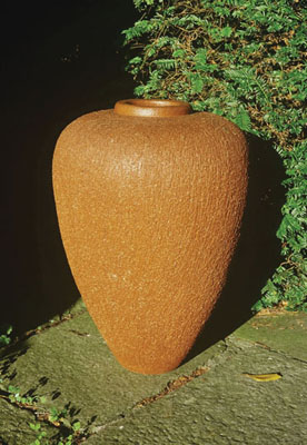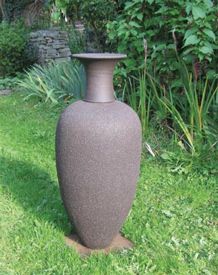 CHRISTINE-ANN RICHARDS media: Vitrified Earthenware £ TO BE CONFIRMED Large Flanged Vase media: Vitrified Earthenware £ TO BE CONFIRMED Christine-Ann Richards has worked in thrown porcelain for more than twenty years, firing in an oxidising atmosphere and specialising in crackle and monochrome glazes. A study trip to China in 1978 with the Craftsmen Potters Association had a radical effect on her work and way of life. She has pursued Chinese studies and returns regularly. Since 1989 she has also been working with vitrified earthenware clay making large pots and water-features. The summer of 1992 she spent on an international workshop in Tokoname in Japan and in 1996 received a Winston Churchill Travelling Fellowship to return there to "explore the way water is used in landscape and architecture". A project award from South West Arts has enabled her to develop and extend the range of work. < back to EXHIBITION PAGE