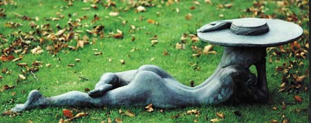 DEANS £4195.00 (in copper resin) Girl With Hat, like Dipping Girl, is perfect in a poolside setting. and also looks stunning on grass. Nick Deans figures are also available in bronze. < back to NICK DEANS > click here for ordering info